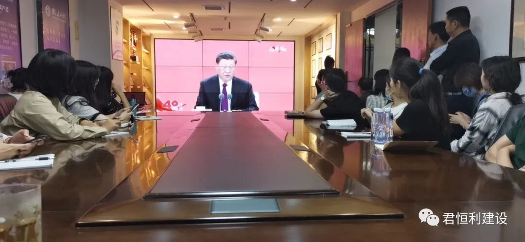 2020年10月14号,深圳经济特区建立40周年庆祝大会在深圳前海国际会议中心举行,中共中央总书记、国家主席、中央军委主席习近平发表重要讲话。深圳君恒利建设公司及时组织全体员工收看了大会的现场直播,认真聆听和学习习近平总书记的重要讲话。