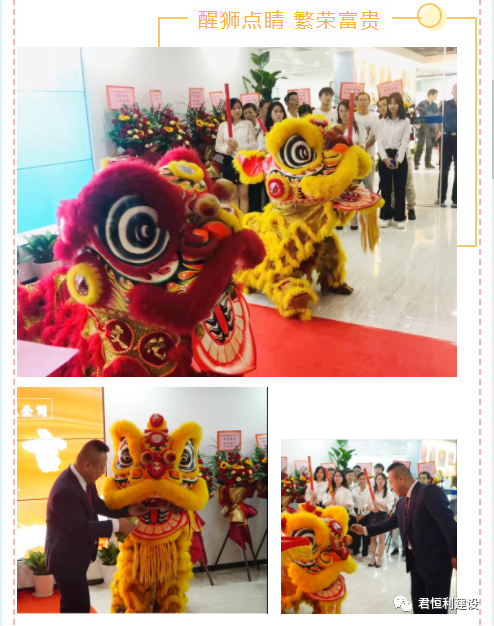 10点28分,开始睡狮点睛环节。锣鼓阵阵送吉祥,瑞狮起舞好运至,董事长肖君女士和总经理黄振军先生为醒狮点睛,共同开启未来新蓝图。