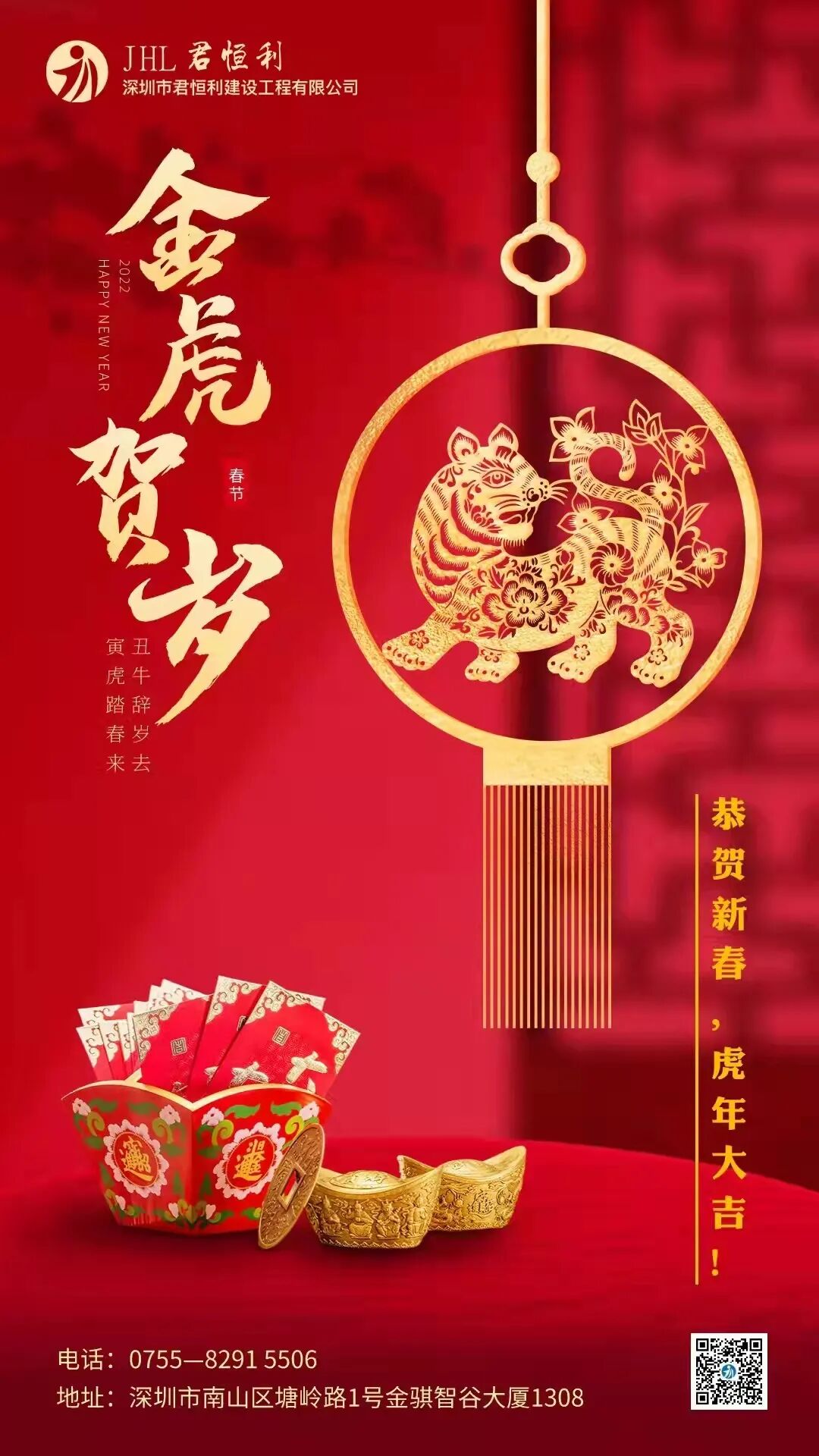 牛年辞旧千家乐,金虎迎新万户欢。2022年的钟声已经敲响,在这辞旧迎新的喜庆时刻,君恒利向全体员工和一直支持我们的新老朋友,致以诚挚的问候。